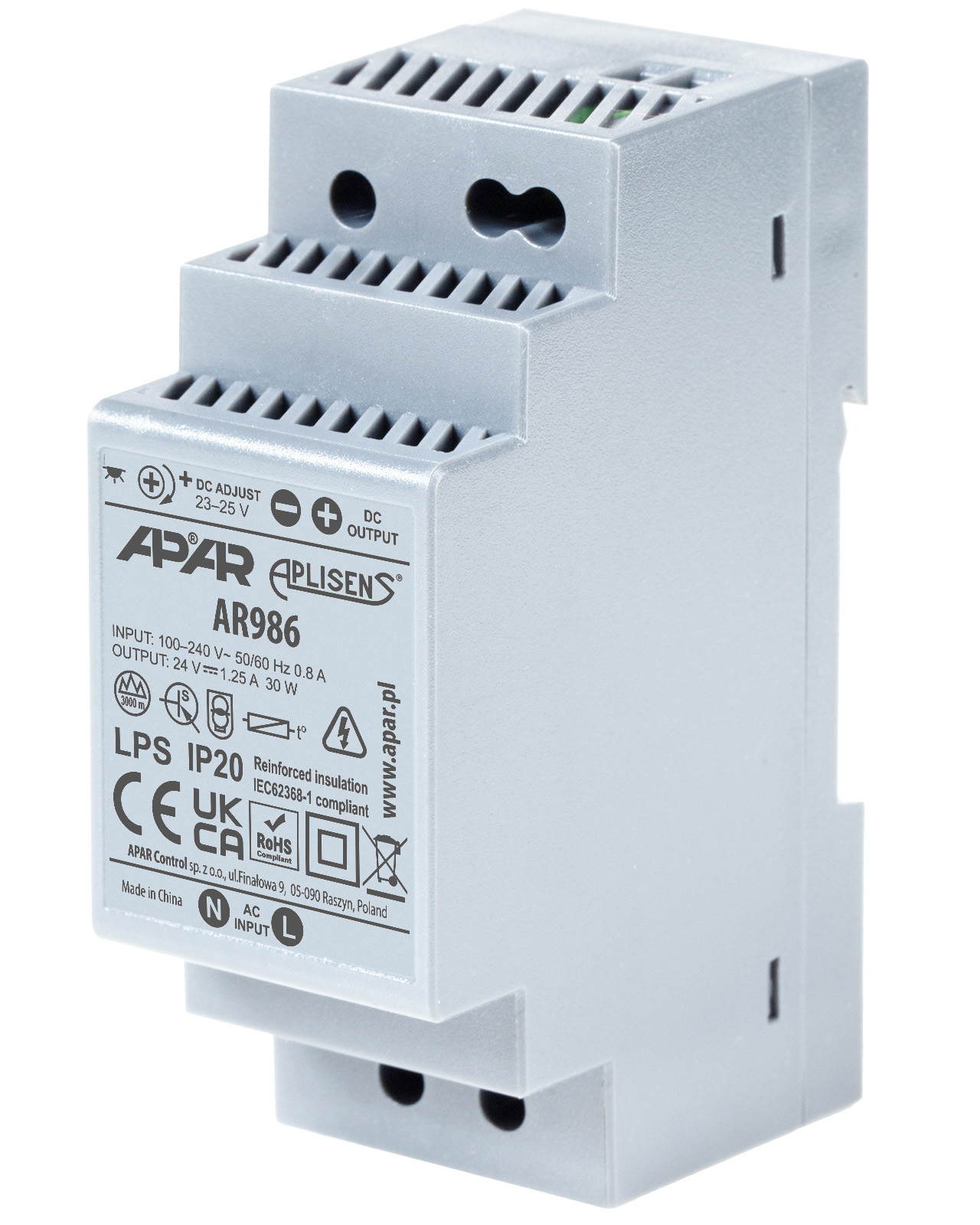 Sieciowy impulsowy zasilacz 24Vdc, 1A do montażu na szynie DIN